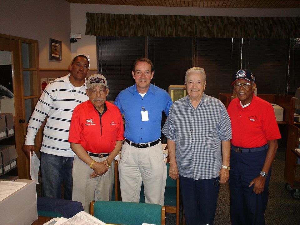 Daniel Haulman, PhD (center) with (L-R) Craig Huntly, historical researcher; Tuskegee Airman Col. William Holloman; Tuskegee Airman Lt. Col. George Hardy, and Tuskegee Airman Lt. Col. Alexander Jefferson.